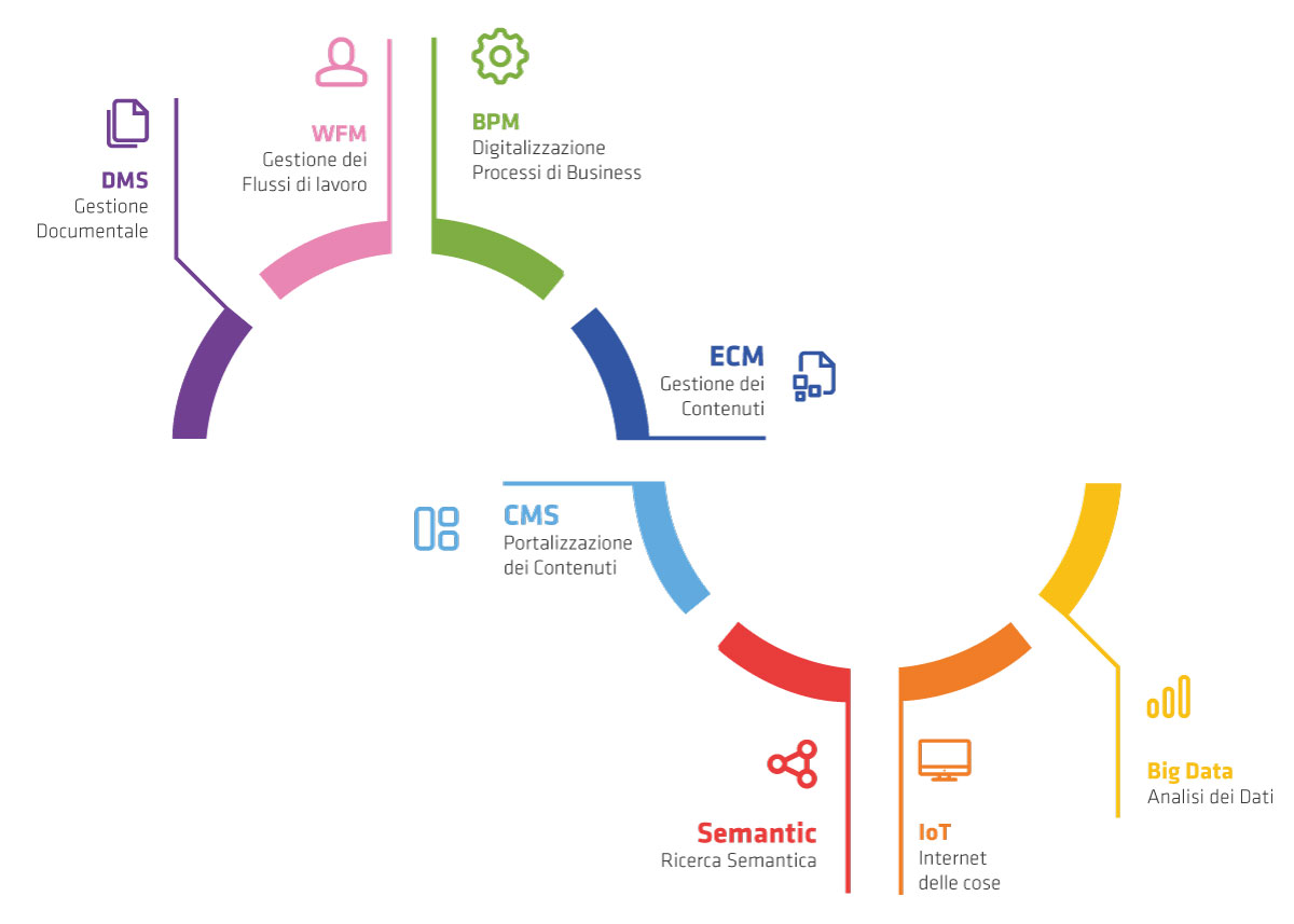 La piattaforma Adiuto permette di generare valore accompagnando il cliente in un percorso innovativo digitale. Sviluppa opportunità di business e di miglioramento continuo dei processi attraverso la trasformazione della gestione documentale verso quella dei contenuti condivisi e organizzati in un approccio ECM e CMS.